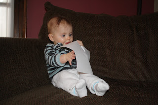 Ainsley is also very interested in everything around her, from the telephone and the TV remote to the mail on the dining room table. Even her birthday sign!